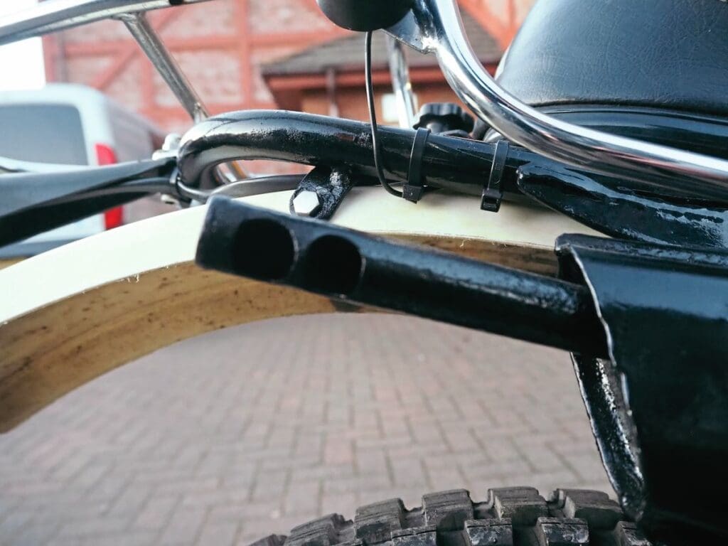 When Hywel died, Danny was asked to appraise the collection for sale and was finally able to buy the little BSA. “It was just a dirty version of what you see now. I’ve just de-rusted the tank and sealed it, cleaned it up, and given it a tweak. And I put the ‘Made In England’ sticker on the frame to wind-up all my British bike-owning friends.