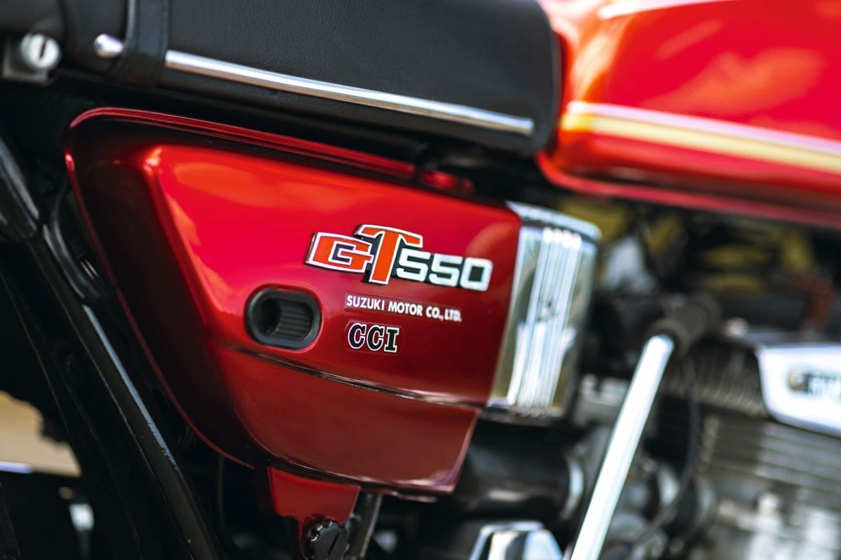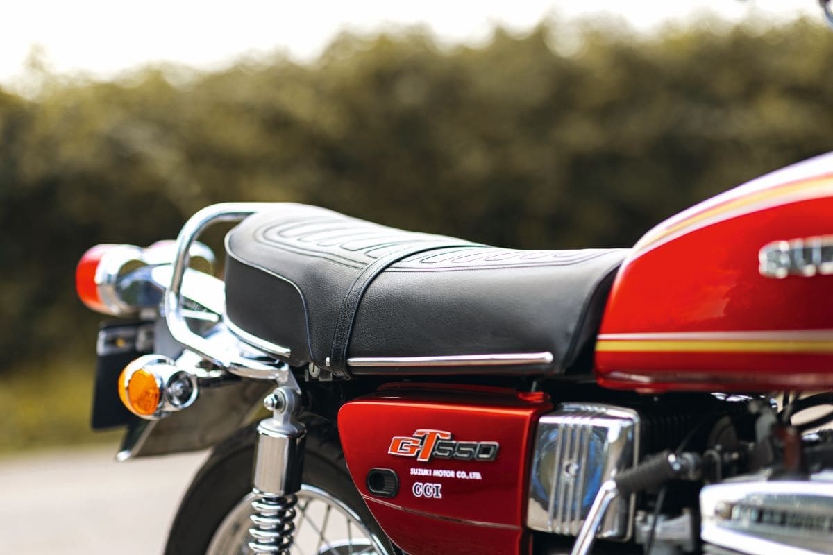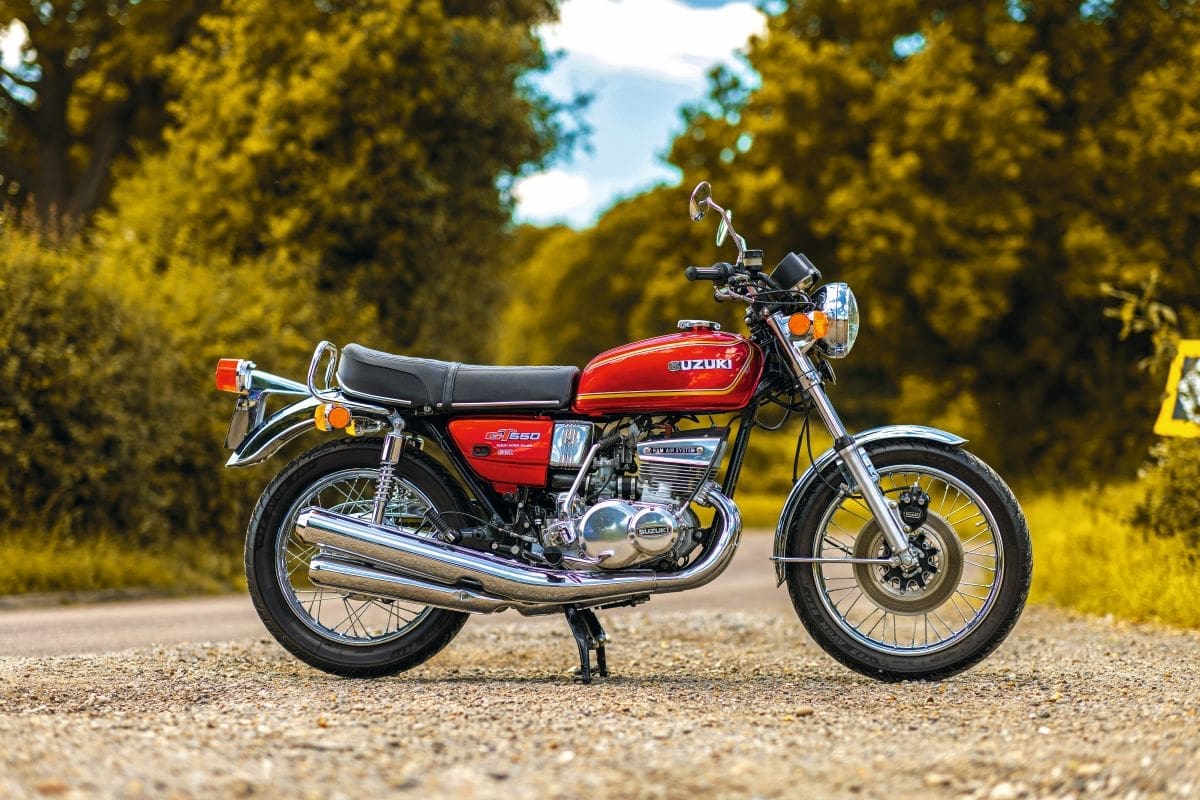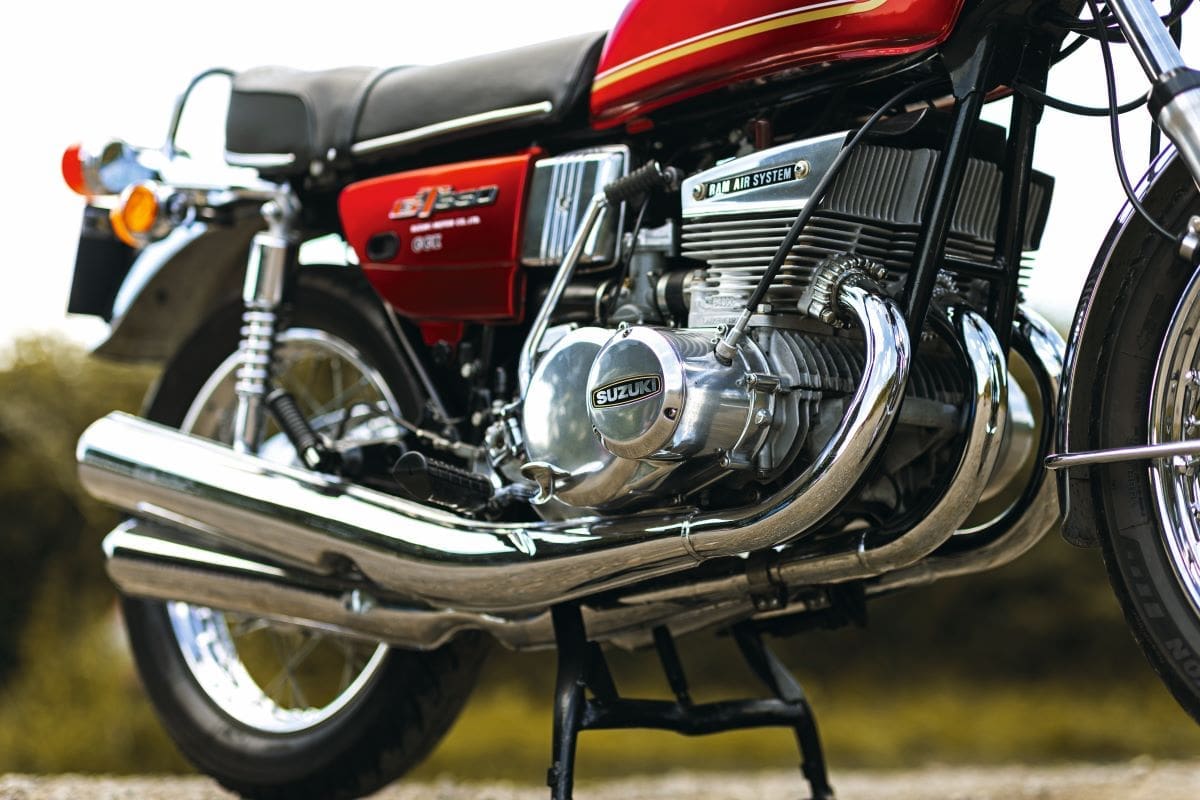 The model had changed little since its inception in 1972 other than the fitment of a disc front brake in place of the previous drum. Buyers still got an electric-start and the iconic three-into-four exhaust system that differentiated the Suzukis from the Kawasakis.