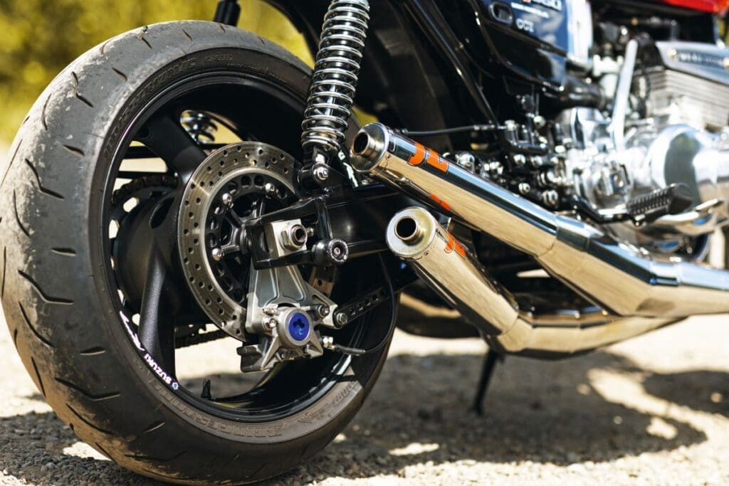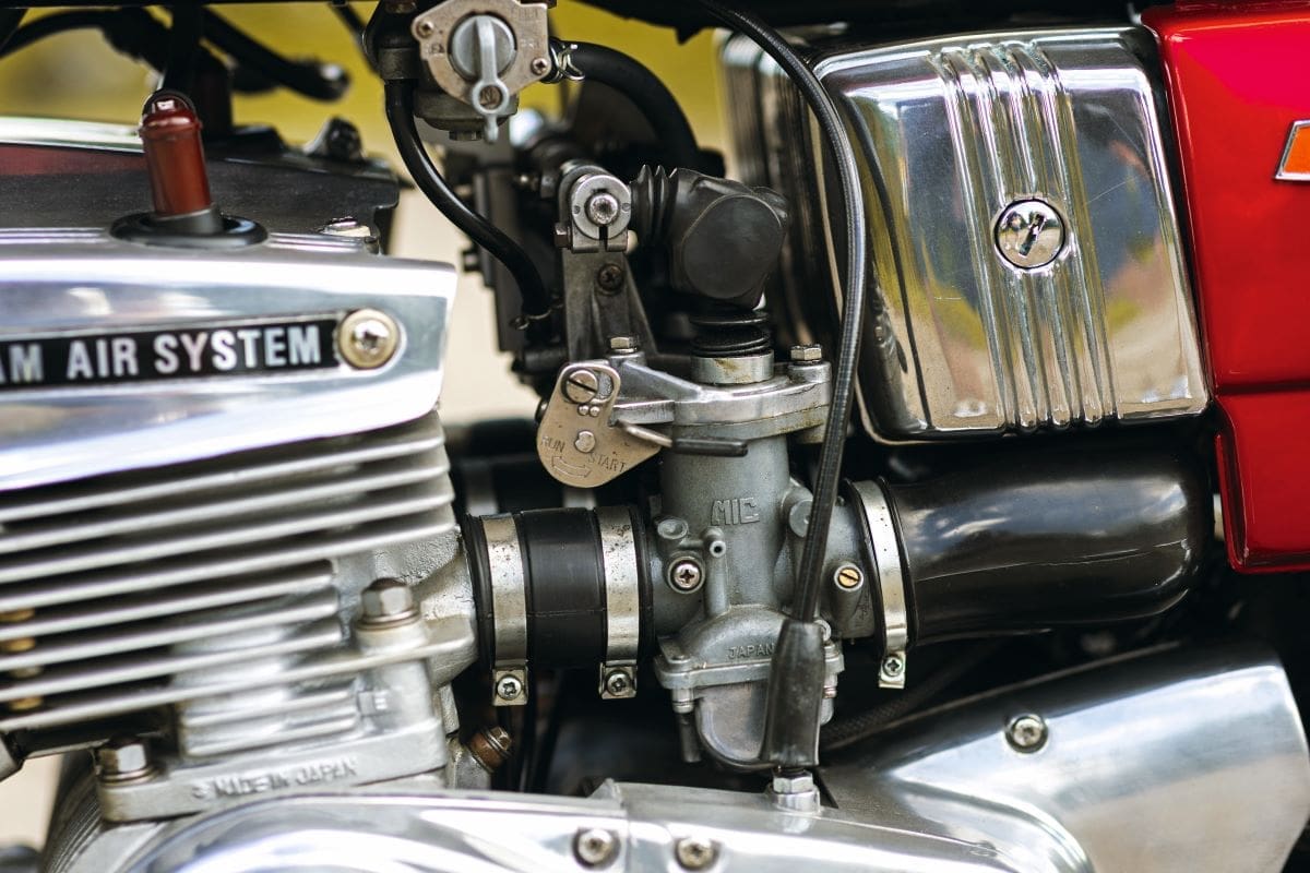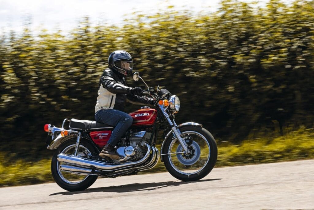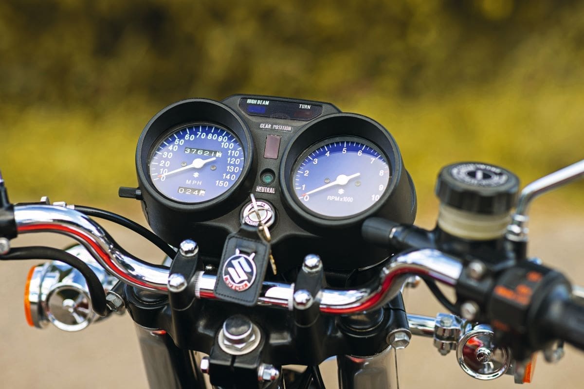 The model had changed little since its inception in 1972 other than the fitment of a disc front brake in place of the previous drum. Buyers still got an electric-start and the iconic three-into-four exhaust system that differentiated the Suzukis from the Kawasakis.