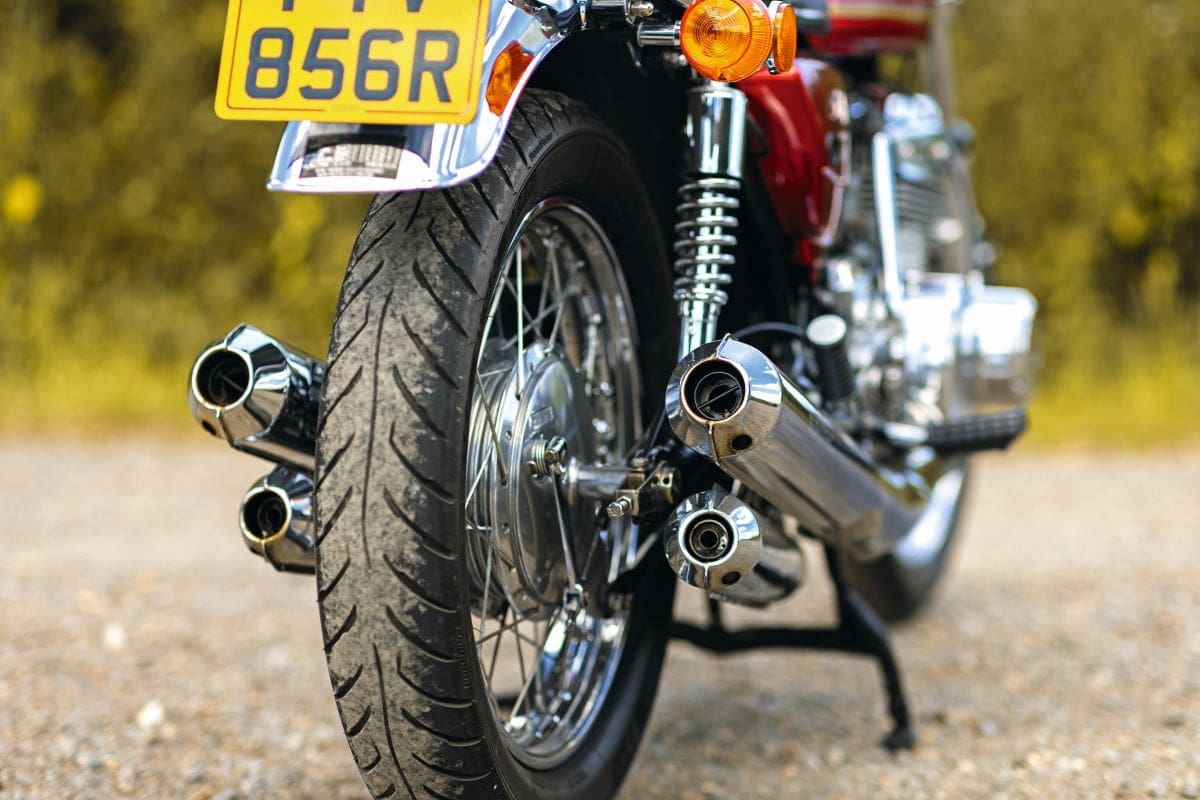 And yet it’s just so enjoyable to ride – the looks, the feel, the delicious gurgle from the unique exhausts, the chrome and red paint all combine to make for an involving, fun, ride. Negatives? No, not really, more observations based on how far we’ve come since 1976 to be honest. Anything with a 19-inch front wheel from the period feels slightly slow to turn nowadays and the disc brake is very much ‘of its time’, but you have to accept such nuances if you’re a fan of 70s classics, surely? As a well-rounded package the GT550 still hits the spot perfectly.