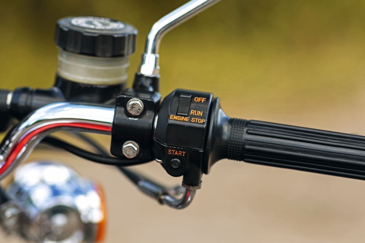 Truth be told, the bike is more of a 1970s stocker with modern classic upgrades from disparate sources. If you care to study the pictures you might just notice… late model XJR1300 swingarm and forks; early model XJR1300 yokes/ wheels; Yamaha Sumitomo/Blue Spot calipers; Brembo Racing radial adjustable-ratio front master cylinder; reverse-action, pull-type rear with a home-made linkage to the original lever; home-fabricated seat based on a Harley XR75 flat-tracker unit; and Kawasaki ZX-6R switch gear. And those are just the obvious bits. There are various ways of adding these and similar to a project like this but, arguably, it takes a touch of genius to ensure the end result not only functions properly, but also doesn’t look like a dog’s breakfast.