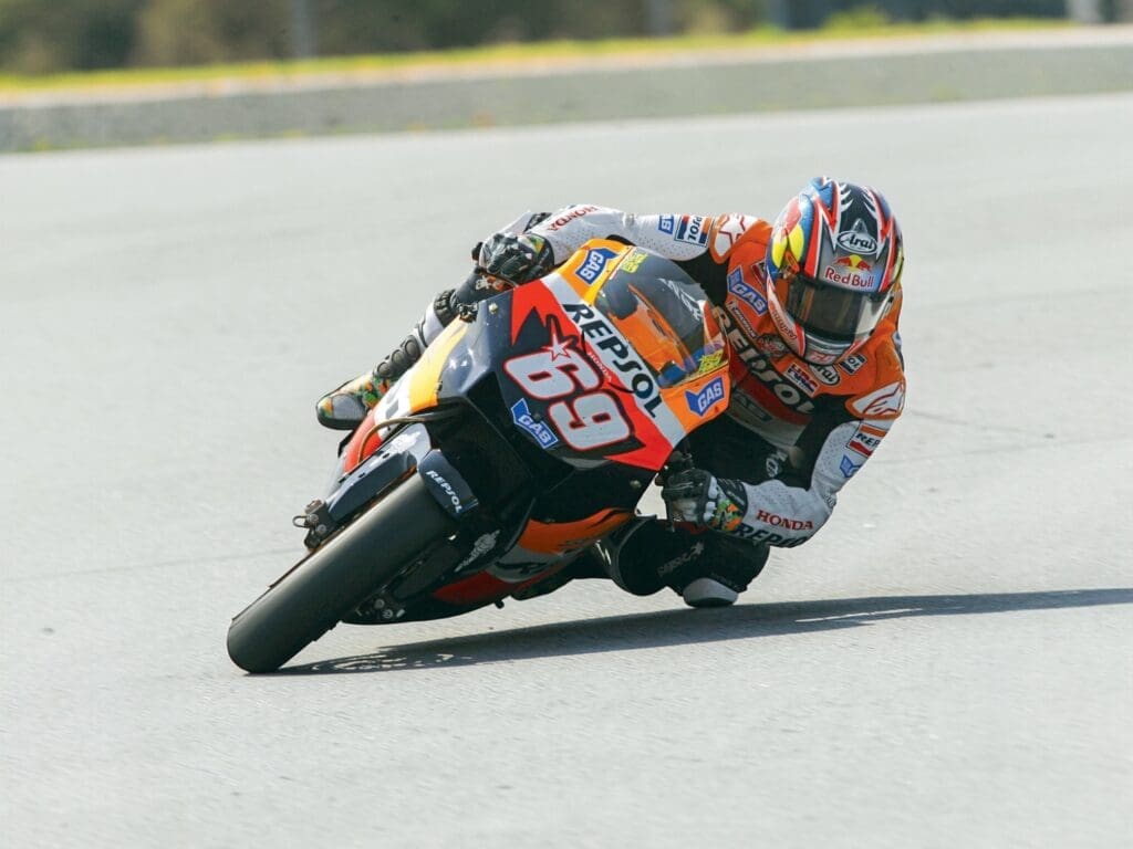 A move to the 800cc machines (and Honda supposedly developing their machine around Pedrosa) meant that Nicky’s star never shone as bright. He’d also ride for Ducati in MotoGP and eventually move to World Superbikes where he’d become one of the few riders to take wins in both championships.