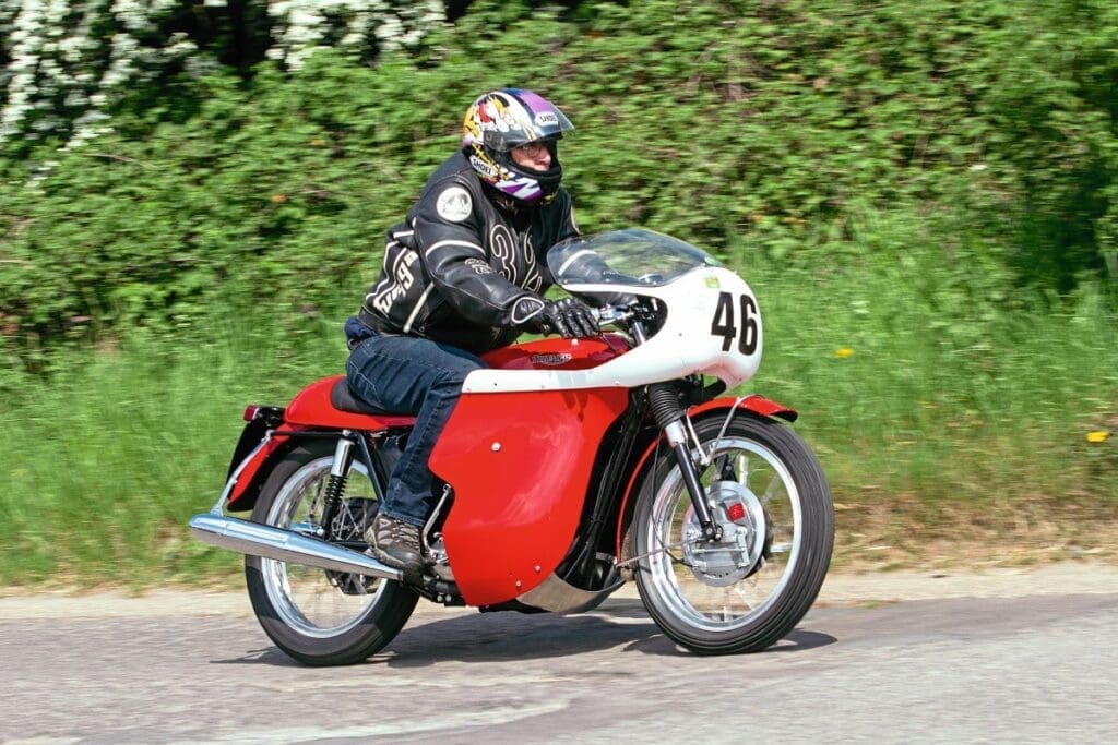 Ironically, it was in the last year of use when the bike really hit the headlines of the world’s press, thanks to a Welsh rider by the name of Malcolm Uphill. Timed at 134.5mph through the Highlander speed trap in the Production TT, riding MAC 232E, Uphill became the first to lap at over 100mph (100.39mph) on a production bike over the full TT circuit, with a record making 99.99mph race average.
