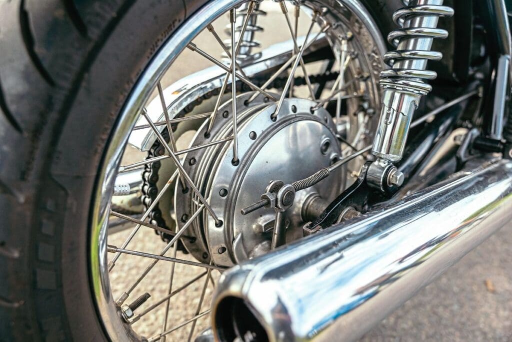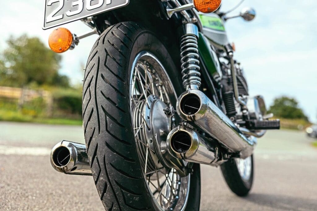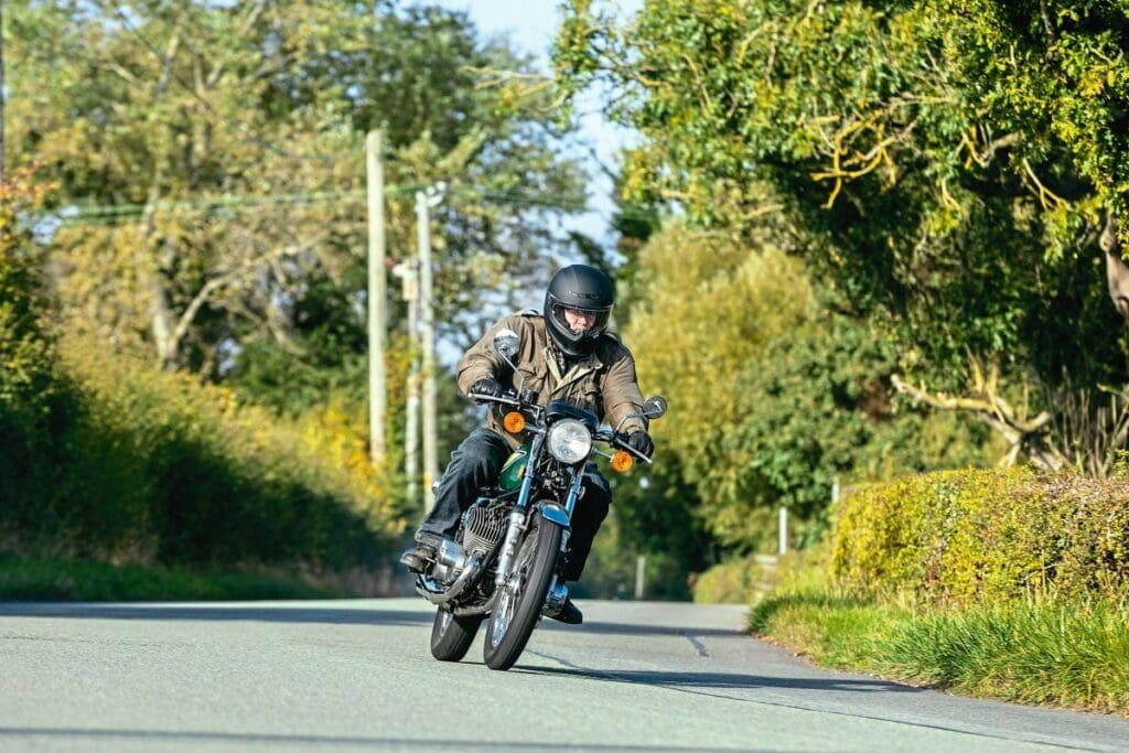The big drum brake was either on or off and faded rapidly in hard use going into UK bends, giving a new terror/excitement to scratching, with many machines ending up on grass verges or worse, while the Japanese Dunlop K70 tyres fitted as standard were notoriously bad on any bike. And, like the brakes, the carburation meant the engine likewise had two settings: on or off.