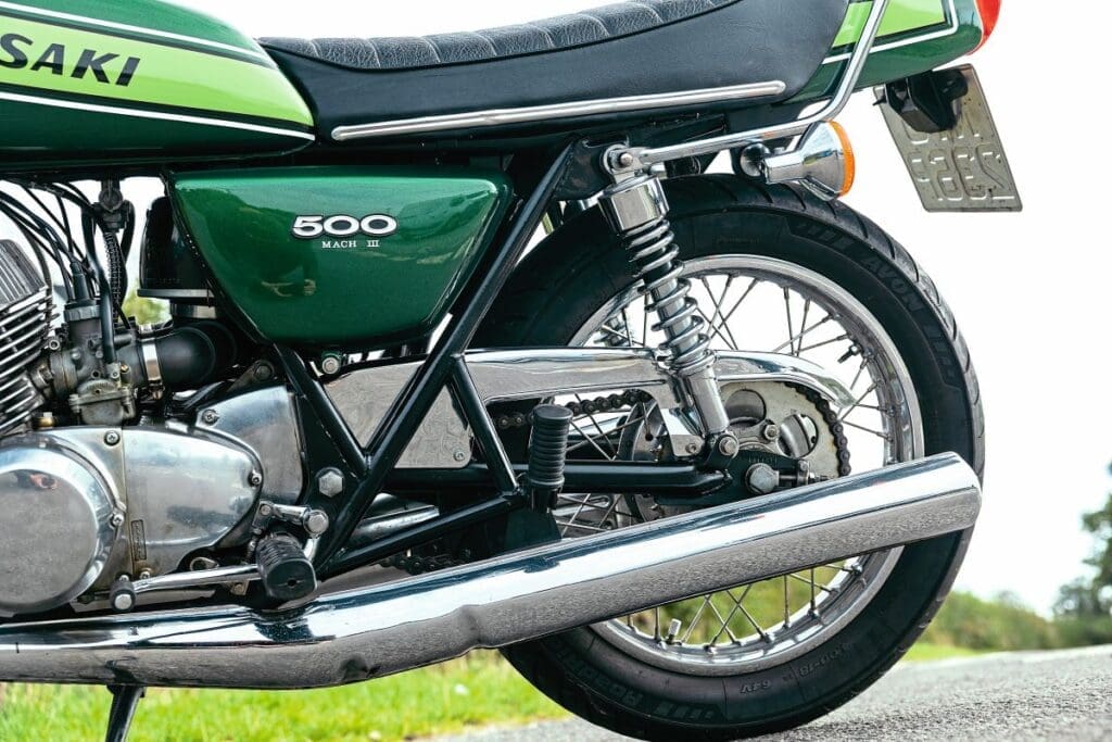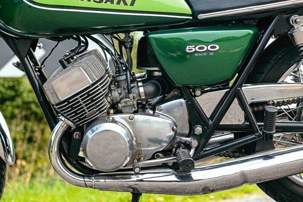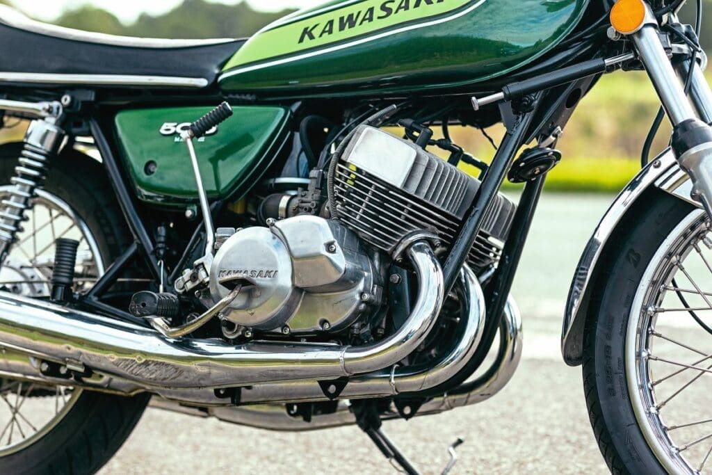 Kawasaki had built a motorcycle in which power was everything and there was no consideration for handling and therefore safety, while respect for the environment from the 24mpg machine and respectability was not part of the equation. Yet racing versions won Grand Prix in the startling livery that became Kawasaki Green.