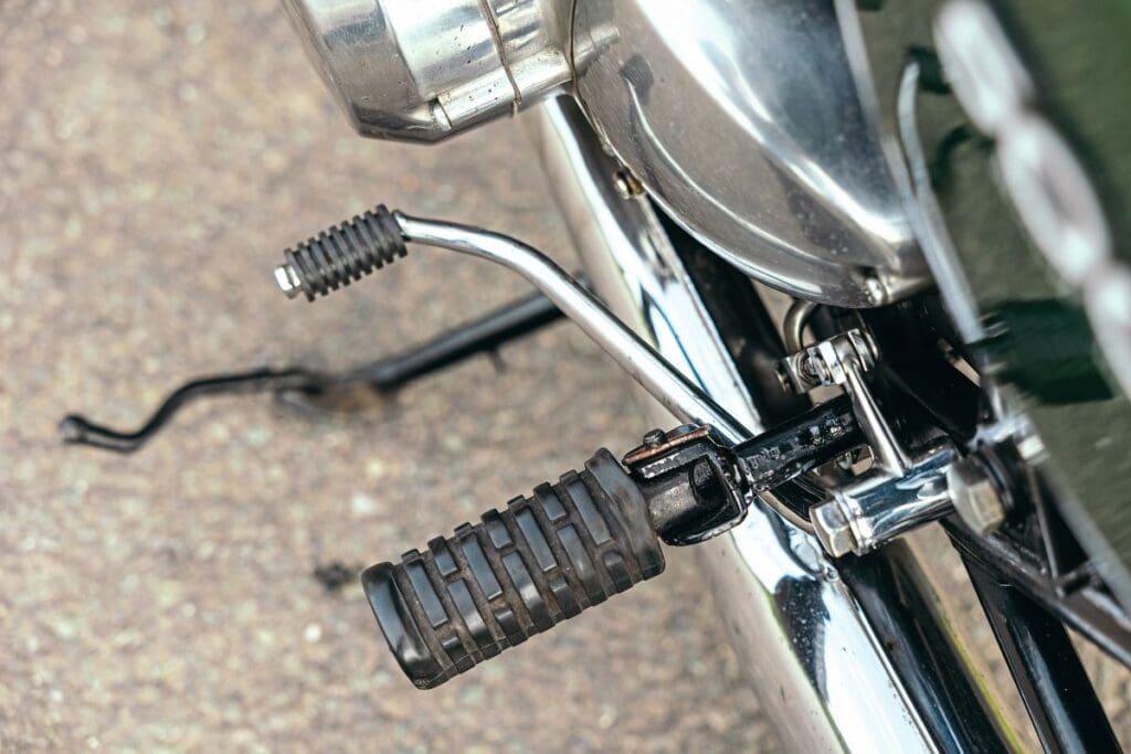 Then I forgot to turn the fuel on and reached down for the fuel tap… only it wasn’t there. It wasn’t on the right either. I had to get off and rummage around under the tank until I found it, mounted in the middle, and I’m not sure what the designers were thinking when they did that.